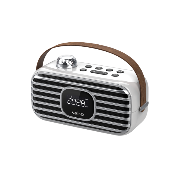 O Veho Mode MD-2 é um altifalante Bluetooth sem fios com um design retro e um rádio DAB integrado. A correia de transporte em pele e a potente bateria recarregável de iões de lítio tornam-no portátil e adequado para todas as ocasiões ao ar livre.