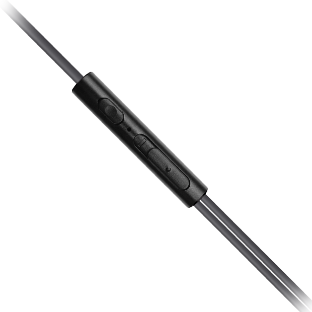 Controlo remoto e microfone em linha para controlo da faixa e do volume, bem como para chamadas em modo mãos-livres